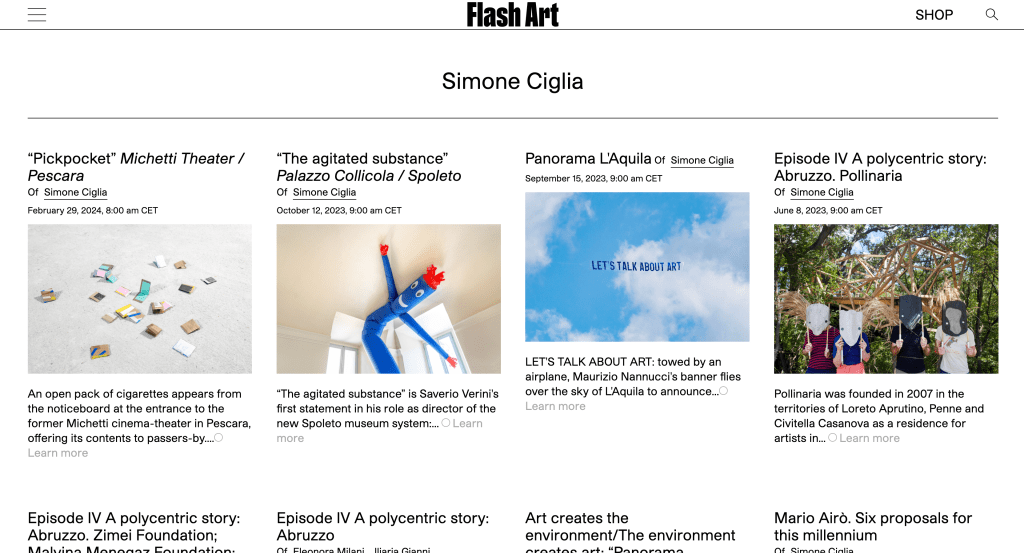 Read some of Simone Ciglia’s publications for Flash Art Magazine, here